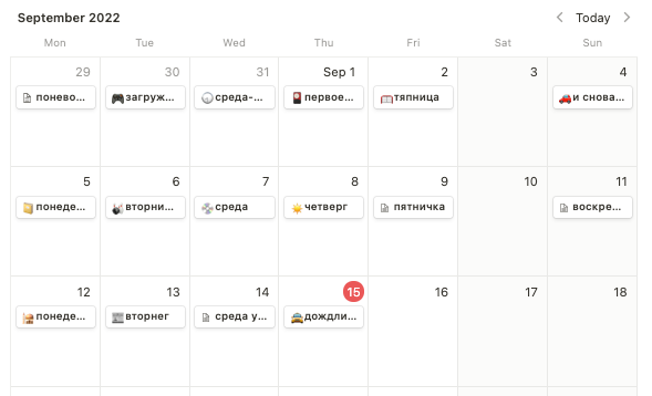 Я пишу ежедневные заметки уже около месяца прямо в Notion. Сделал database-табличку, и добавил view в виде календаря, чтобы видеть, какие дни пропустил. Заметил, что по выходным обычно забываю сделать заметку, потому что меньше сижу за ноутбуком.