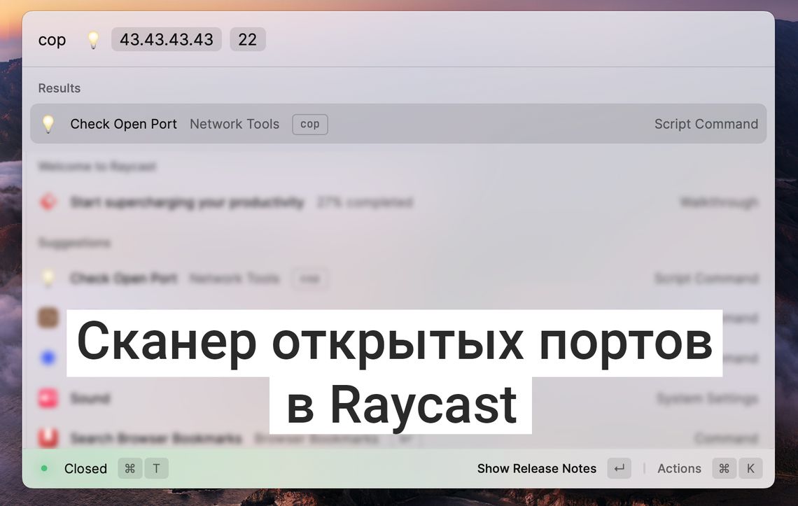 В этой статьей я покажу, как можно добавить свой скрипт в Raycast на примере проверки открытых портов на серверах.