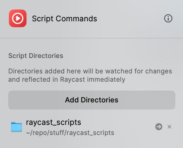 Если добавить новые скрипты в эту директорию, то они автоматически появятся в Raycast. Максимум — нужно будет запустить команду Reload Script Directories.